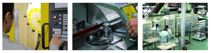 自社工場はいくつかの大型工作機械を保有し、豊富な経験とノウハウを持つ技術・製造スタッフが高精度かつ付加価値の高い製品を製作しています。