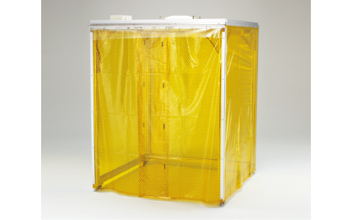ブラックカーテンにより内部を暗室に保ち、組立・解体・移設がカンタンな組立式クリーンブースです。