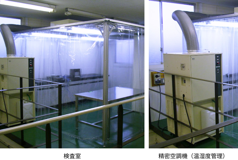 | 特長 | 検査スペースの範囲をシートブースで囲み、精密空調機を設置。 作業台周囲で滞留が起こらない気流制御仕様。 |