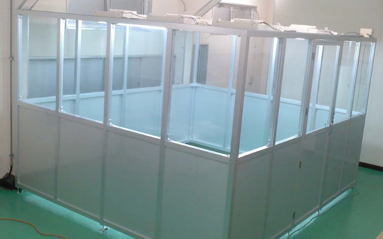 アルミフレームで組み上げるクリーンブースを当社が他社に先駆けて開発し、