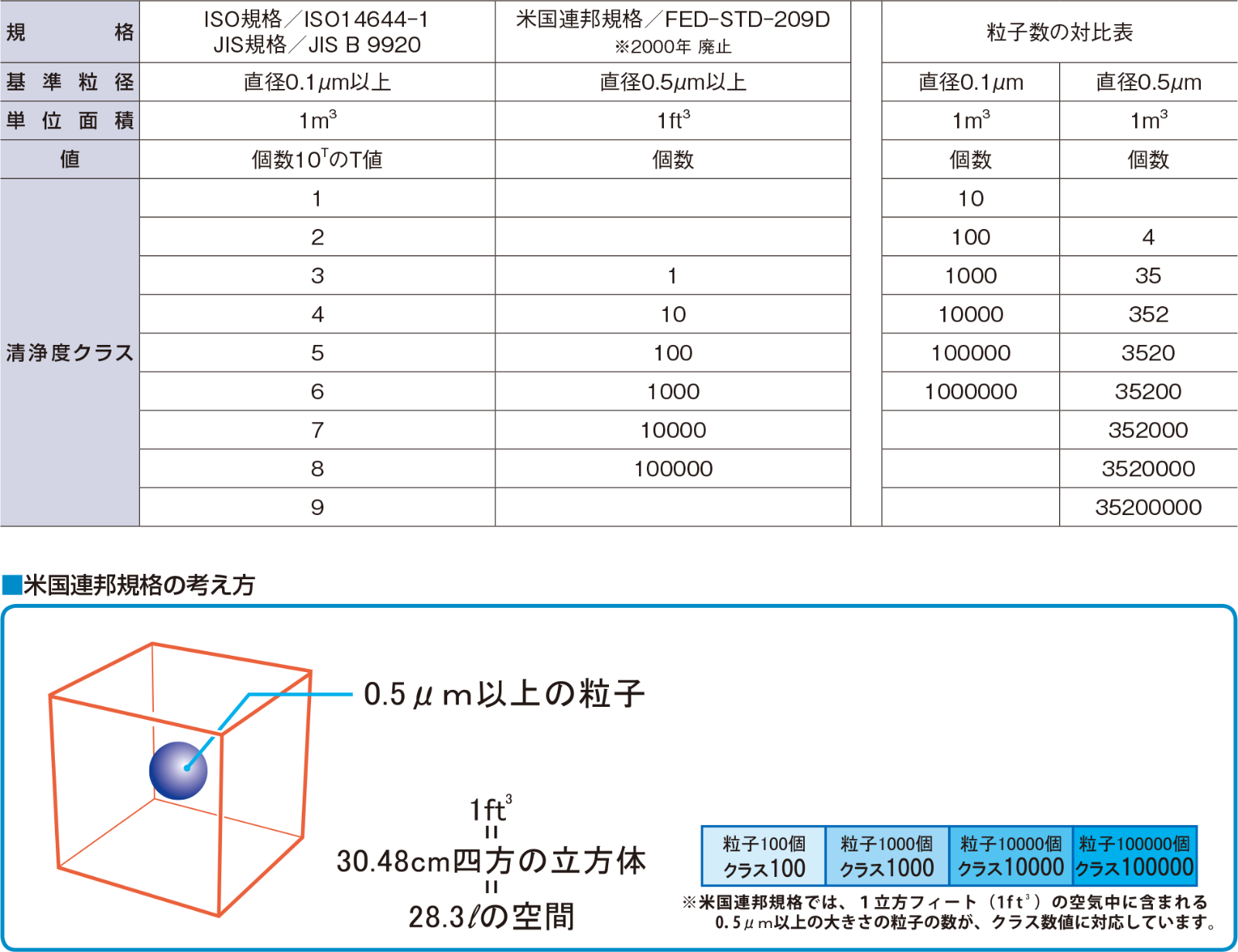 この値によってクリーン環境の清浄度クラス分けが行なわれます。
